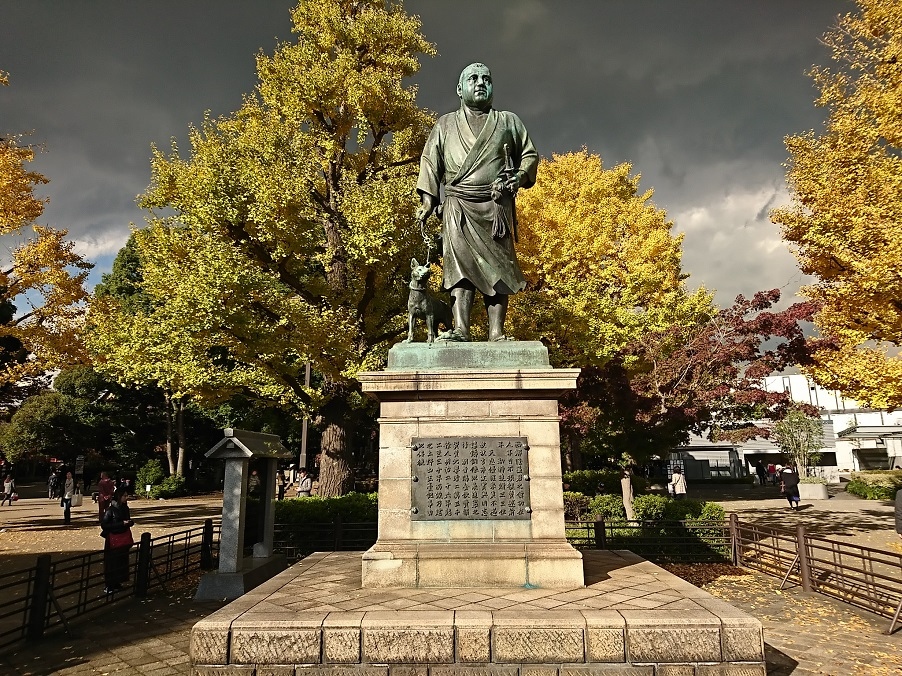 上野恩賜公園の入り口付近に立っています。作者は高村光雲で明治31年(1898年)に除幕式が行われました。皇居外苑の楠木正成像、靖国神社の大村益次郎像と共に東京の三大銅像の一つになっています。上野公園を代表するスポットなので、上野公園観光時には西郷隆盛像訪問をお忘れなく!