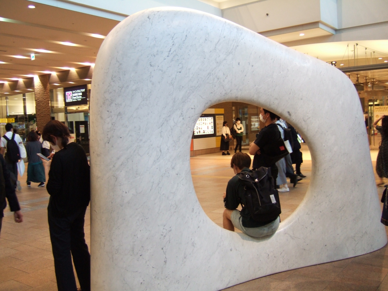 札幌駅に直結したJRタワーにはたくさんのアート作品が展示されていますが、西コンコースにあるこの作品はその代表格です。白い御影石をなめらかに削った彫刻で、遠くからでも目立ちます。屋内なので風化しにくいとは思いますが、いつもきれいに保たれています。
