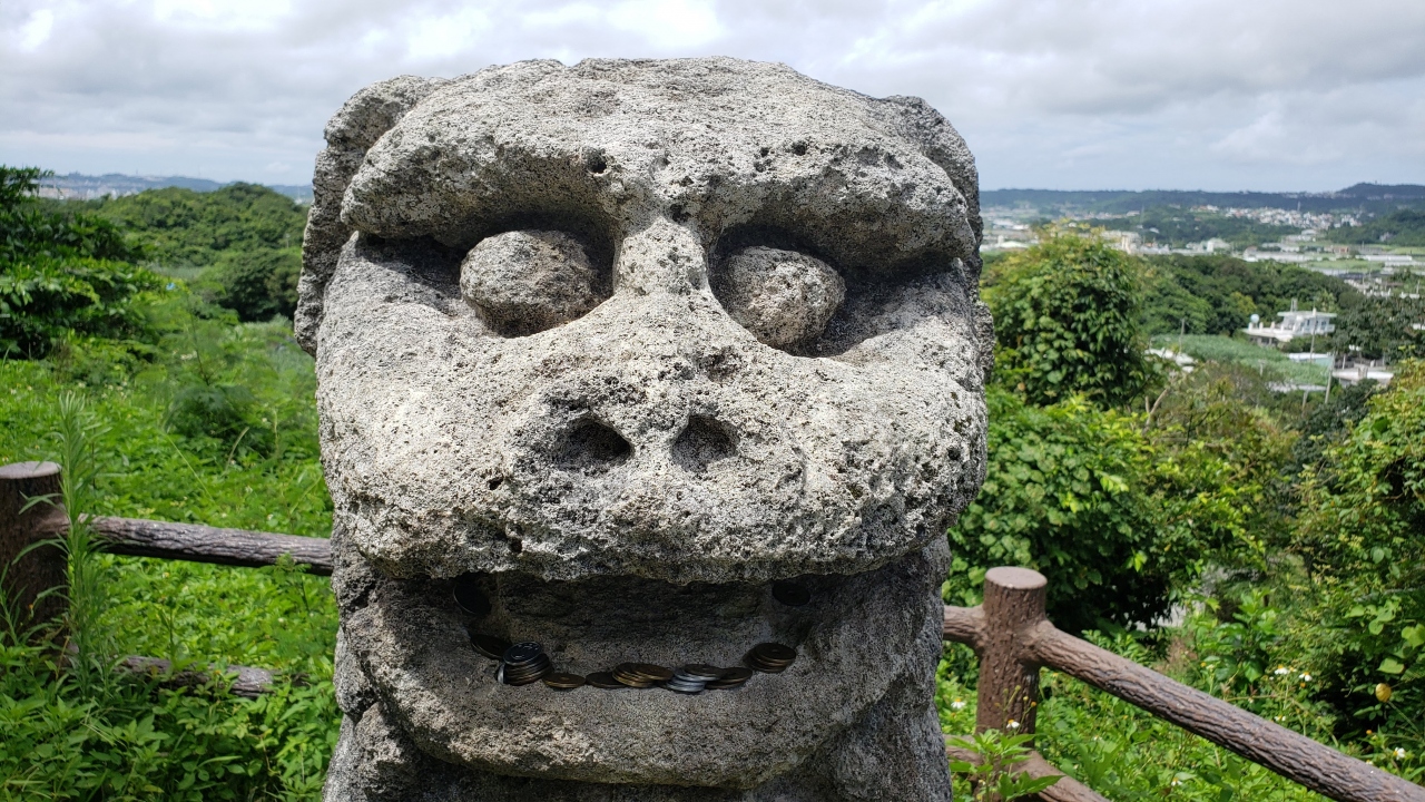 八重瀬町の高台にある現存最古といわれるシーサー。といってもそんなに古いわけでもなく17世紀の江戸時代のもの。沖縄線激戦地の南部にあるので銃弾跡が痛々しい。よくぞ生き残ってくれた。姿かたちは素朴な感じでいとおしい。メジャーな観光スポットでもないため、標識も直前にしかないのでGoogle Mapのみを頼りにアクセスした。