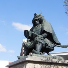 武田信玄の雄々しい感じが伝わってくる、迫力のある銅像。銅像以外にはなにもありませんが、目立つので、待ち合わせ場所などに最適です。
