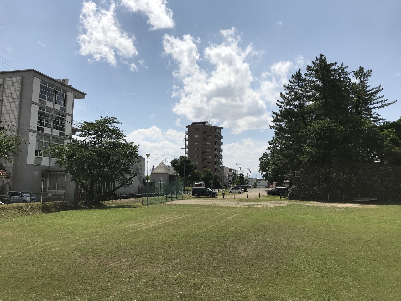 岐阜県の城跡巡り:加納城跡、住宅街の中に本丸跡・堀跡・石垣が残る