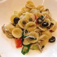 メインのパスタは、しらすとフレッシュトマトのプッタネスカビアンコショートパスタを選びました。しらすの塩味とオリーブの香りがちょうど良いバランスでした。