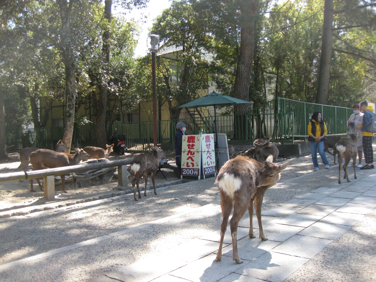 鹿せんべいを持っていない時は可愛らしいですが、鹿せんべいを持つやいやな、遥か彼方の鹿までワラワラと寄ってきて大変な事になります。