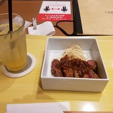 落ち着いて食べられそうなお店だったので利用。日曜日の15:00頃でしたが他の客と間隔を空けて座れました。メニューを見ると大分県産のものを使用しているというビーフカツレツが目についたので単品で注文。飲み物は「つぶらなかぼす」にしました。接客も丁寧で大分に来た良い思い出になる食事となりました。
