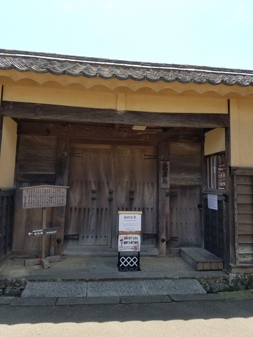 北台武家屋敷跡の、両側を土塀に囲まれた通りに、その土塀に続くように同じ色の門がありました。白ではなく土色の門というのも珍しいでしょうか。家老などの上級武士のお屋敷とのことで、間口も広いりっぱな門でした。