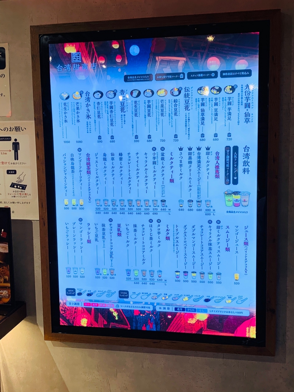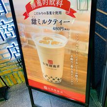 台湾超人気 日本上陸〈甜黒糖クリームミルク〉 が メニューの中で目立っていた