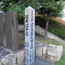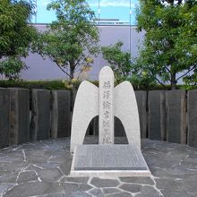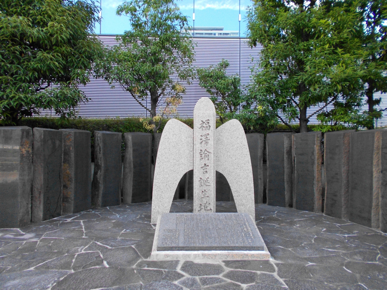 福澤諭吉誕生地記念碑は大阪福島の堂島川沿い、朝日放送の社屋に隣接して建てられています。
