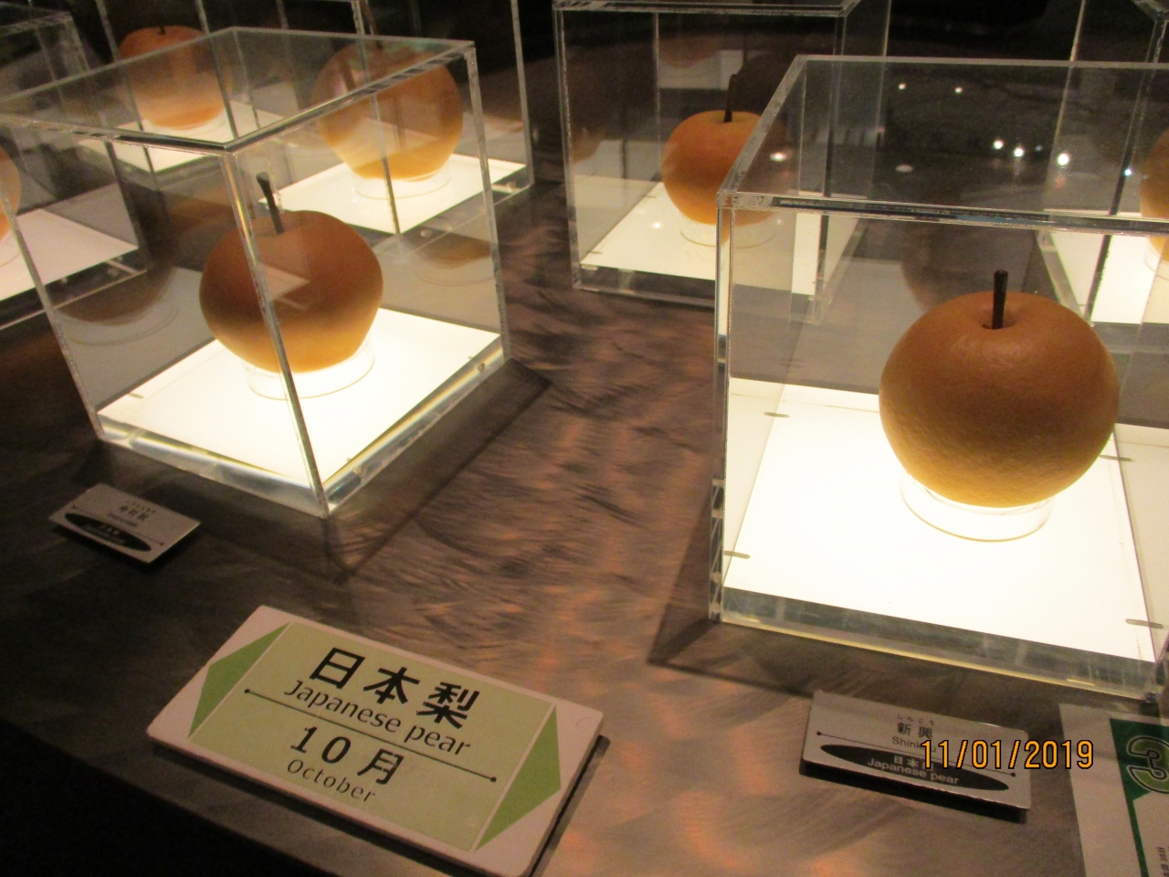 「梨と世界の人々」のコーナーでは、世界の梨に関する資料が展示されています。世界中で食べられている、70種類の梨の品種模型は本物そっくりだそうです。