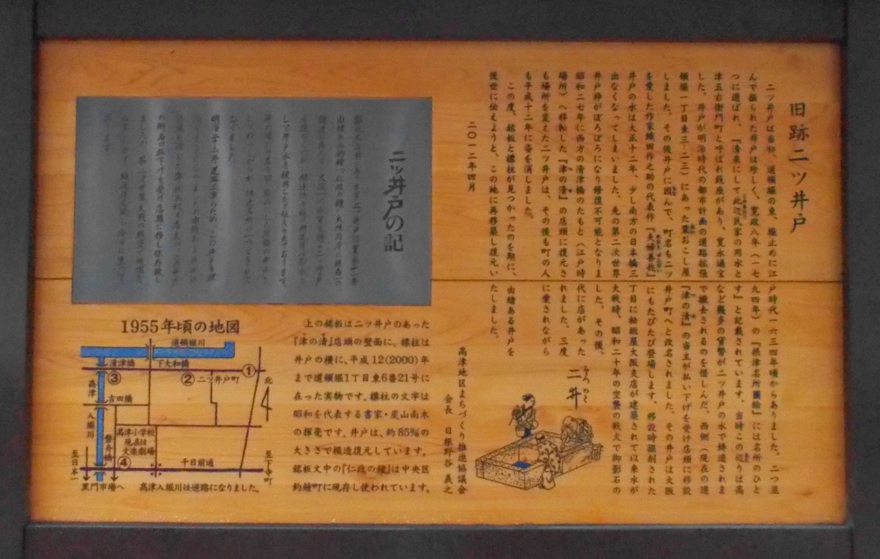 二ツ井戸とは、1634年頃、道頓堀の東、堀止めにあった井戸の名称。