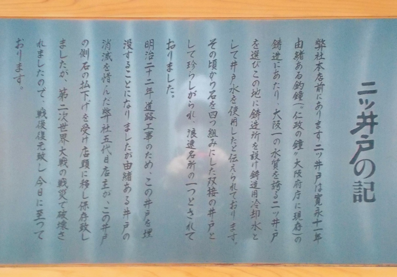 国立文楽劇場の前、千日前通りに二ツ井戸旧跡があります。