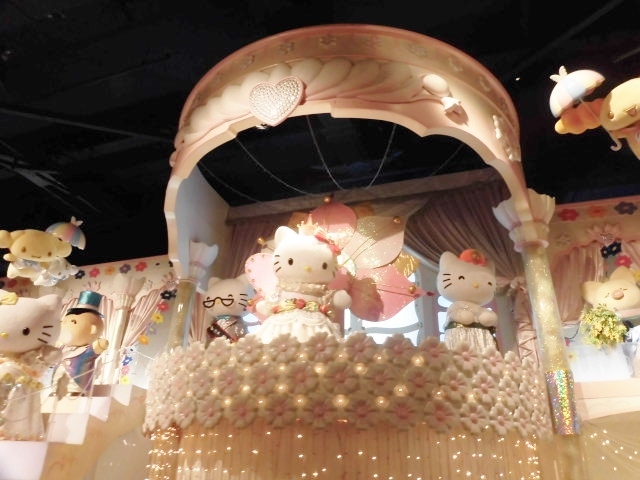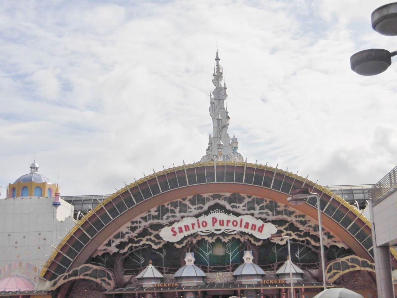 駐車場から、入園するためのエレベーターへの通路にもたくさんのサンリオキャラのぬいぐるみやオブジェ、展示物があり楽しみながら向かうことができます。エレベーターから一旦外へ出て、入園します。