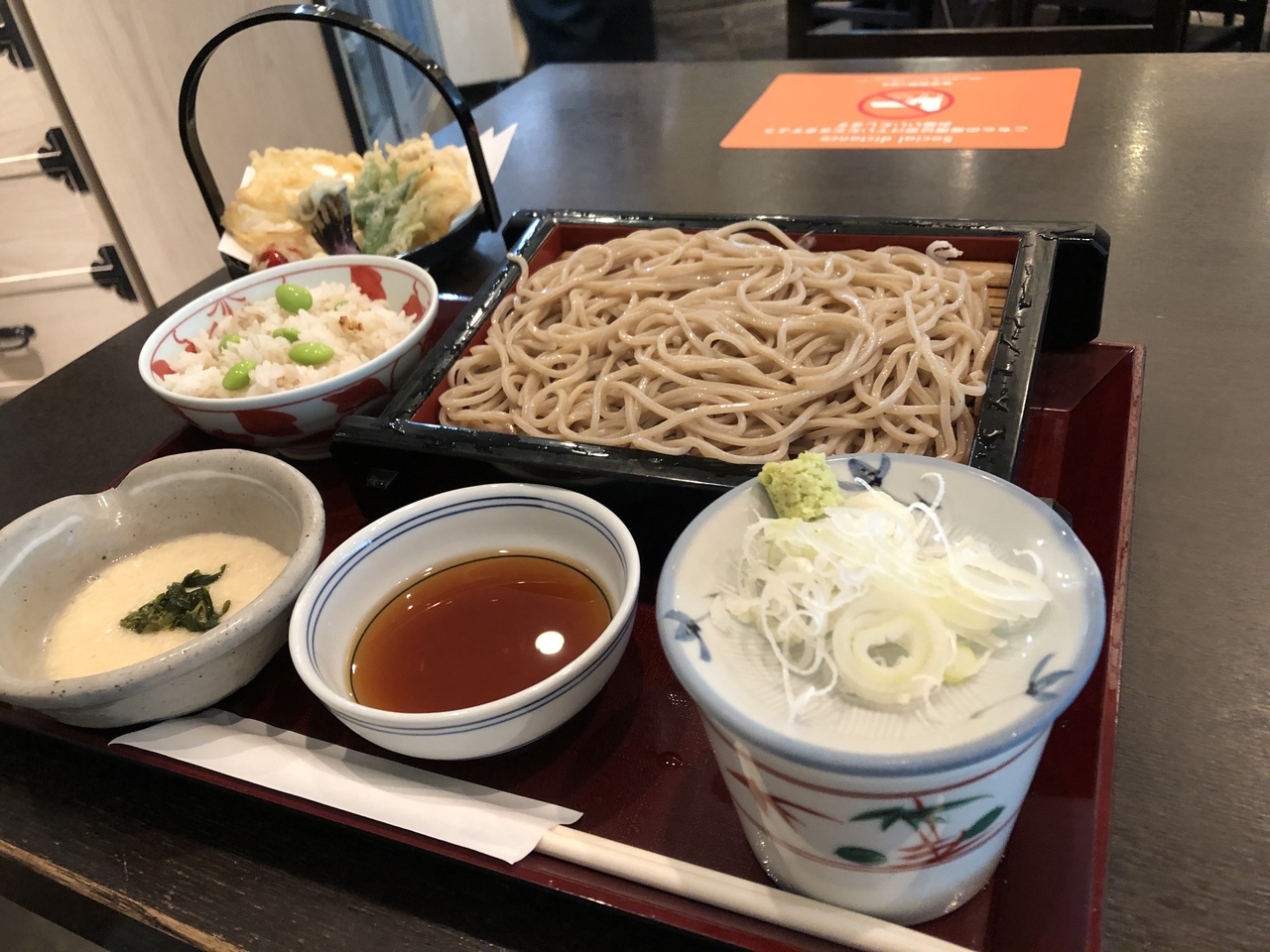 レストラン棟の5階にあるそば屋さん。お洒落なそば屋さんですよ。定食類も充実していて値段もリーズナブルですよ。今回はおススメの定食を。定食には1500円くらいでしたが天ぷら、炊き込みご飯、そばがついてました。