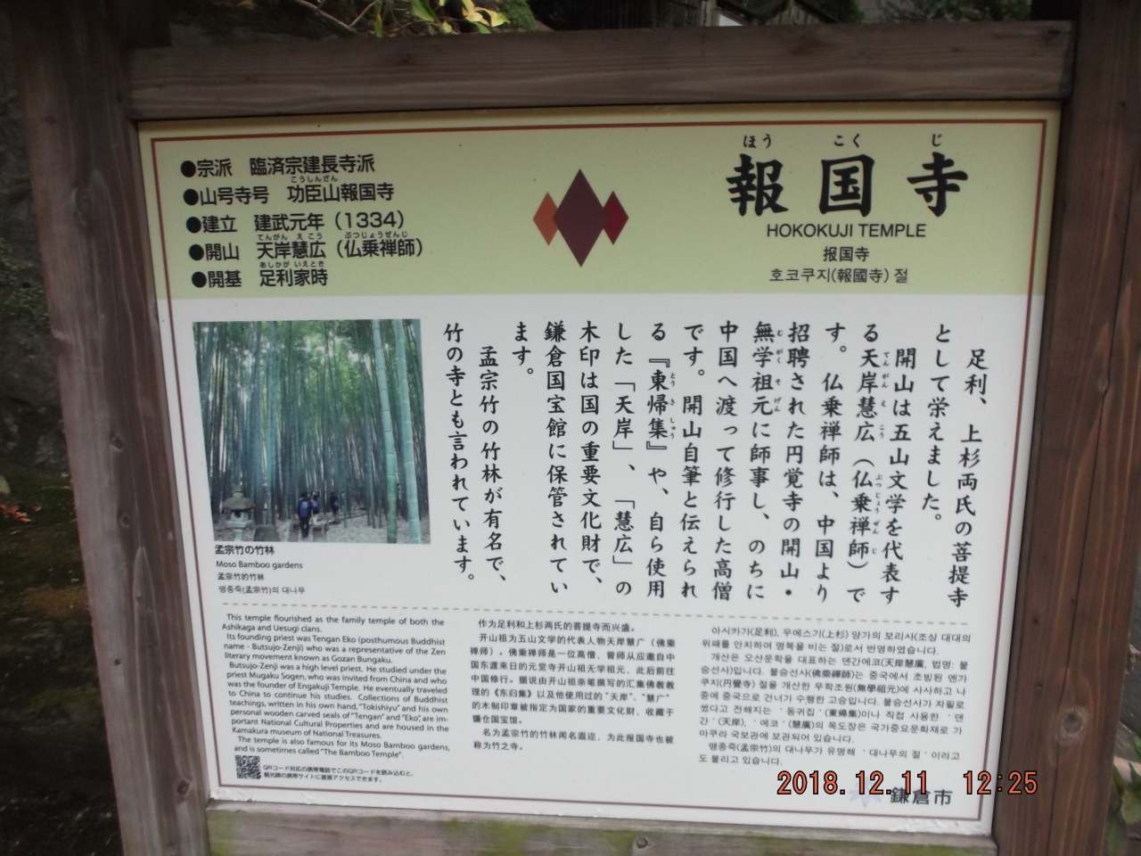 食後、南へ5分位歩きここに来ました。庭が綺麗だとの評判で行きました。この寺は臨済宗建長寺派の寺で観光客は入場料が必要です。入場料を払うだけあって庭が手入れされていて綺麗でした。本堂左側に竹庭があり散策しました。お寺の観光では静かで綺麗で行く価値はあります。抹茶もいただいて600円でした。