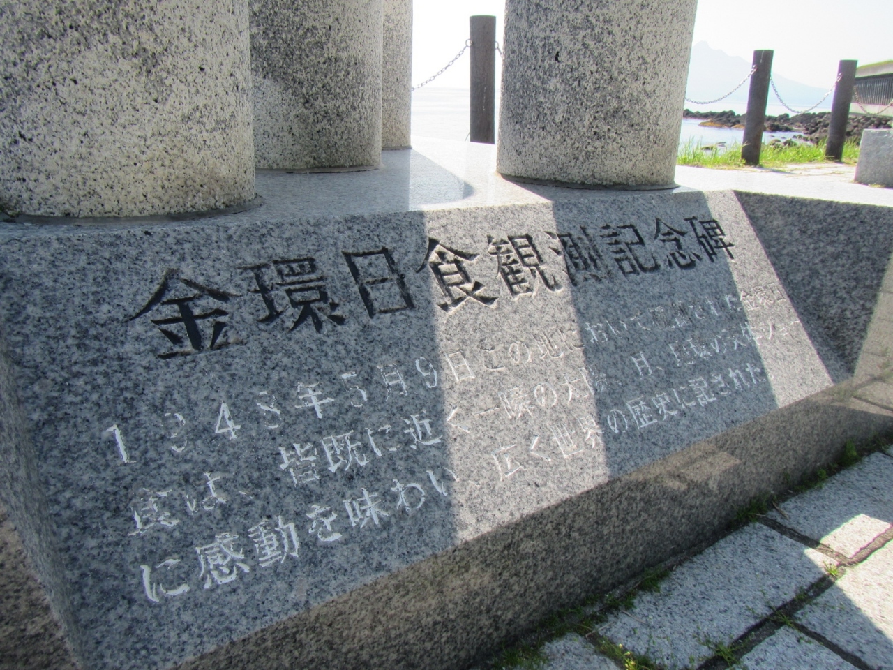 1948年5月9日に観測された金環日食を記念してのものですが、モニュメントは比較的新しく、晴れた日は海の青と爽やかな対称をなしています。