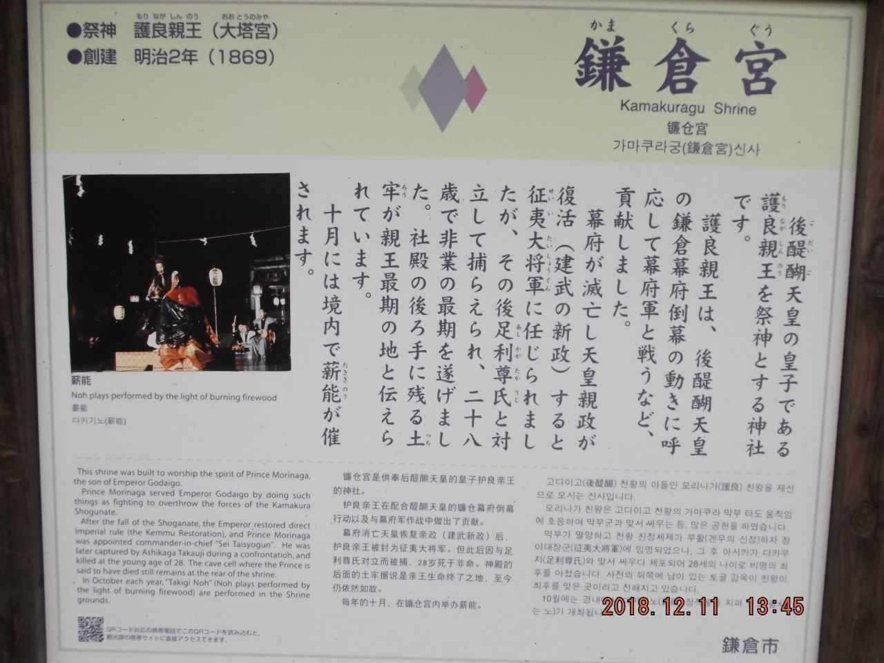今回は鎌倉駅&八幡宮の東側を散策しました。駅からは歩いて30分位の所にある、この「鎌倉宮」に初めて行きました。鳥居の横に「管弊中社鎌倉宮」の石柱を見つけました。