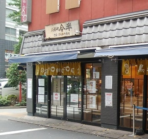 水天宮前の交差点からすぐそば、人形町通りに面した店舗です。
