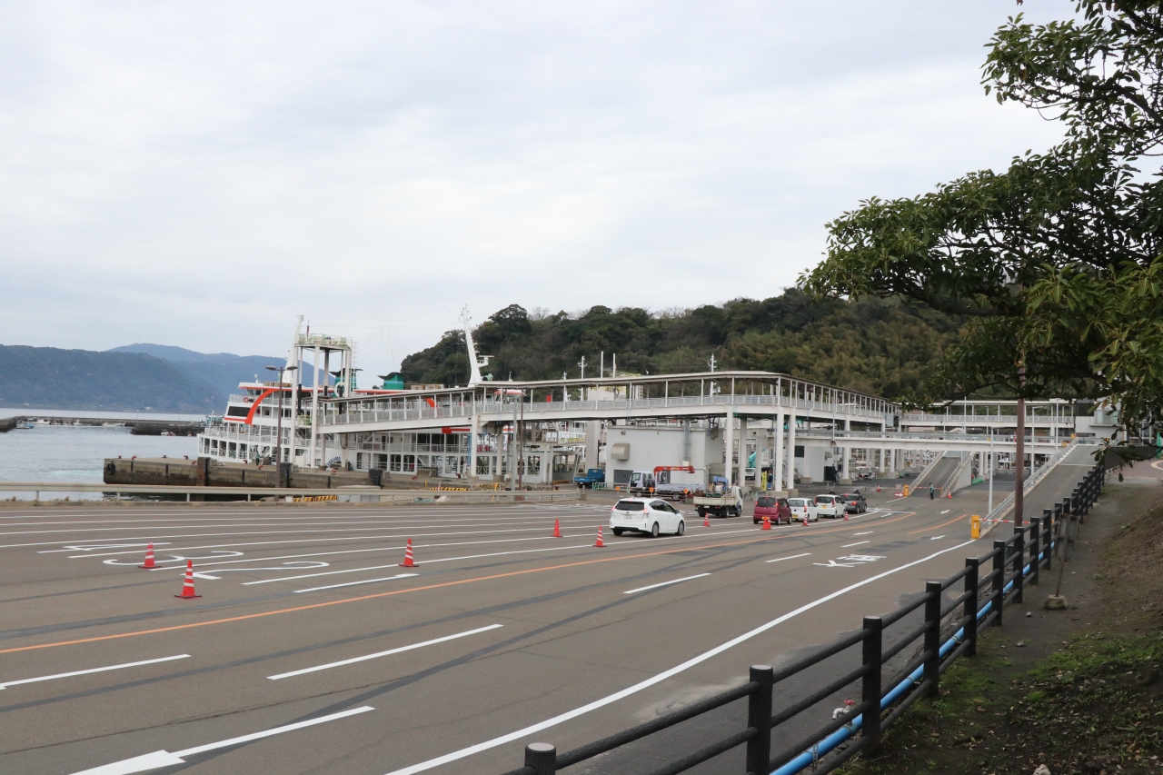 乗船待ちの車が列をなしていましたが、台数も多くなくのんびりとした時間が流れていました。桜島フェリーの運賃支払いは全てこちら側で行われることになっているので、あらかじめ小銭や財布の準備はしておきたいところです。港付近の徒歩圏内には足湯やカフェなどがあるので、本数がある昼間時間帯なら一本見送ってのんびり過ごすのも悪くないかもしれません。