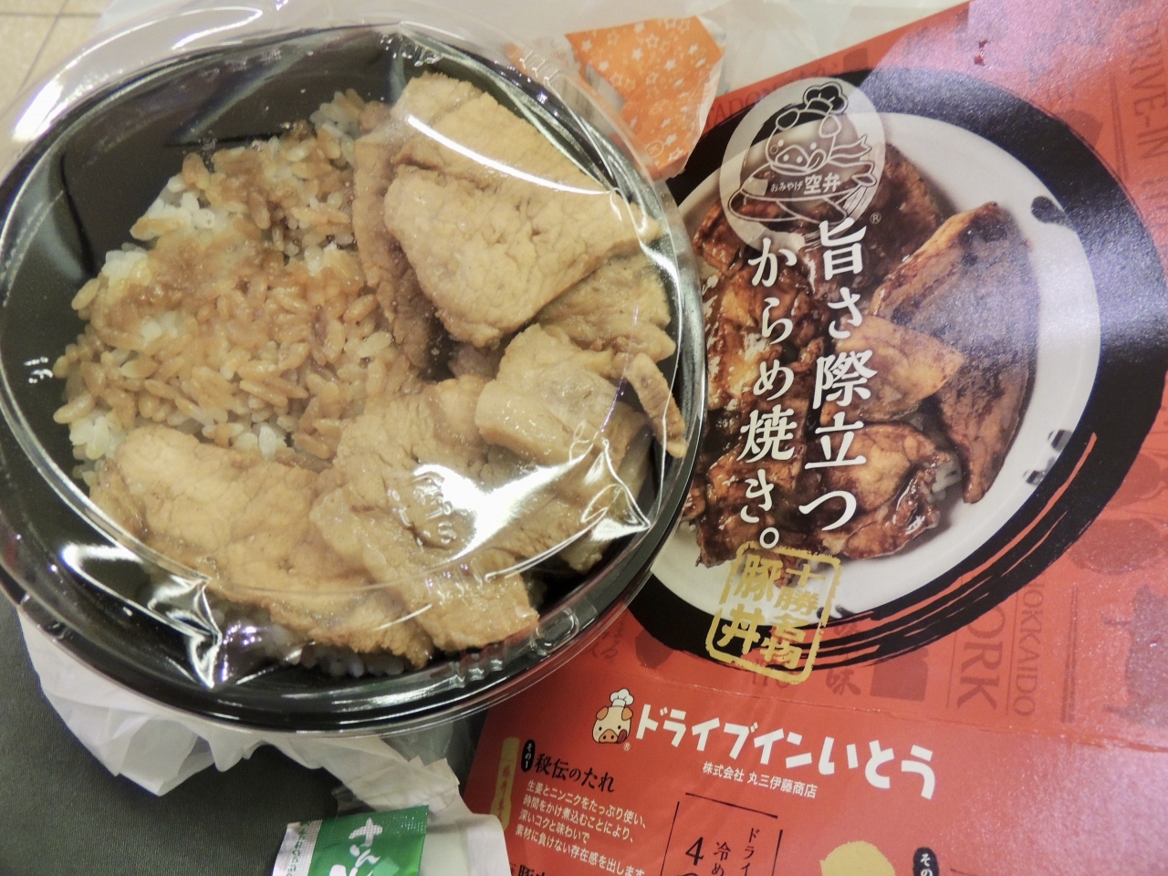 毎日魚づくしだったので、肉が食べたくなり、イートインする時間がなかったので、テイクアウトして、羽田に着いてからリムジンバスの待ち時間に頂きました。味付けは甘辛のオリジナルソースで焼き付けているようでした。