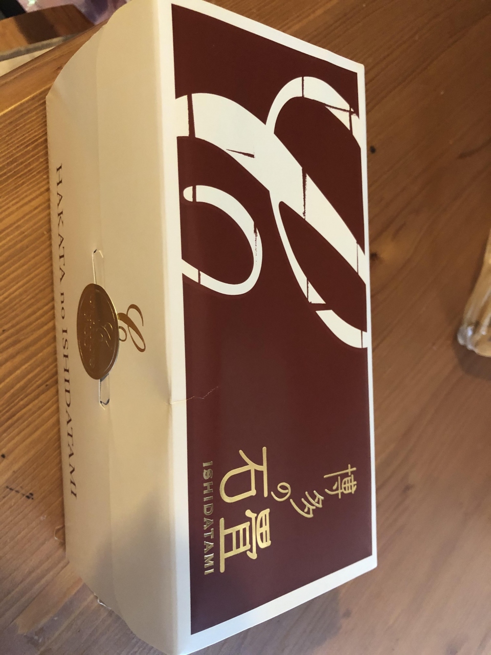 冷凍の石畳ロールは、福岡空港でしか売っていません。博多土産はこれと決めています。ふわふわのカステラと生クリーム、ちょっとビターなチョコレートが美味しいです。箱の中に保冷剤を2個、外に2個つけてくれますが、自分でも保冷剤と保冷袋を持参します。