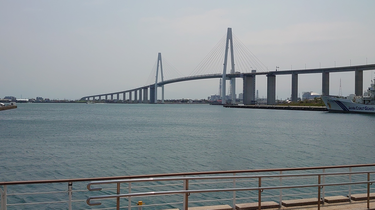 海王丸パークから眺め、実際に車で渡りました。公園から見た時には結構長い橋なのかな?と思ったのですが、車だとすぐに渡り切ってしまいました。橋の構造についてはよく分からないのですが、歩いて渡ることもできるそうです。夜はライトアップされるそうなので、夜は夜景を楽しめそうです。