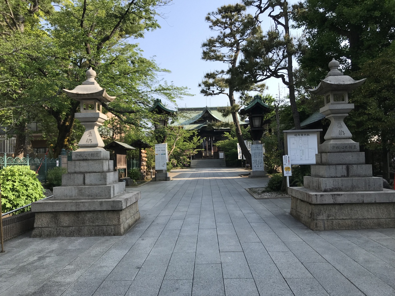 桜新町駅の北口を出て通り沿いを東に歩いて2~3分です。参道の隣には幼稚園があります。