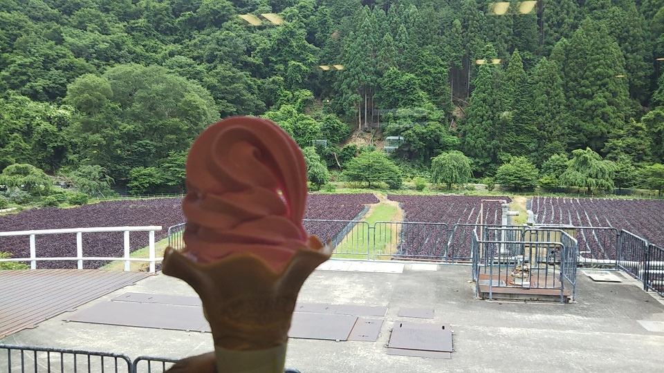 鯖街道で京都を目差すと最後の買い物スポットがこのお店。土産の買い込みです。愚妻は買い走りますが愚僧は赤紫蘇風味のアイスクリーム。SNS風の写真を撮っているとバックが気になる。自家紫蘇畑という畑の雑草の枯れ方が異常です。欧州で数日前に1兆円という賠償が決定したラウンドアップを使用していなければ良いのだが、客目当ての自家農園の除草法としては間違っているな。