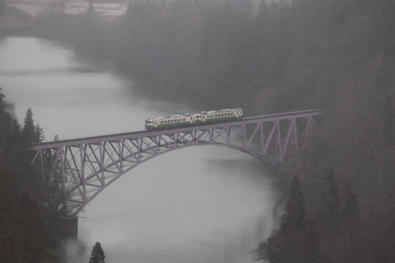 道の駅です。ここからすぐの展望台から只見川にかかる只見線の只見川第一橋梁を眺めることができます。冬の雪景色、秋の紅葉、新緑と四季折々で列車が走る風景を楽しむことができます。2020年は雪が少なく、訪れた日が雪景色が拝めませんでした。