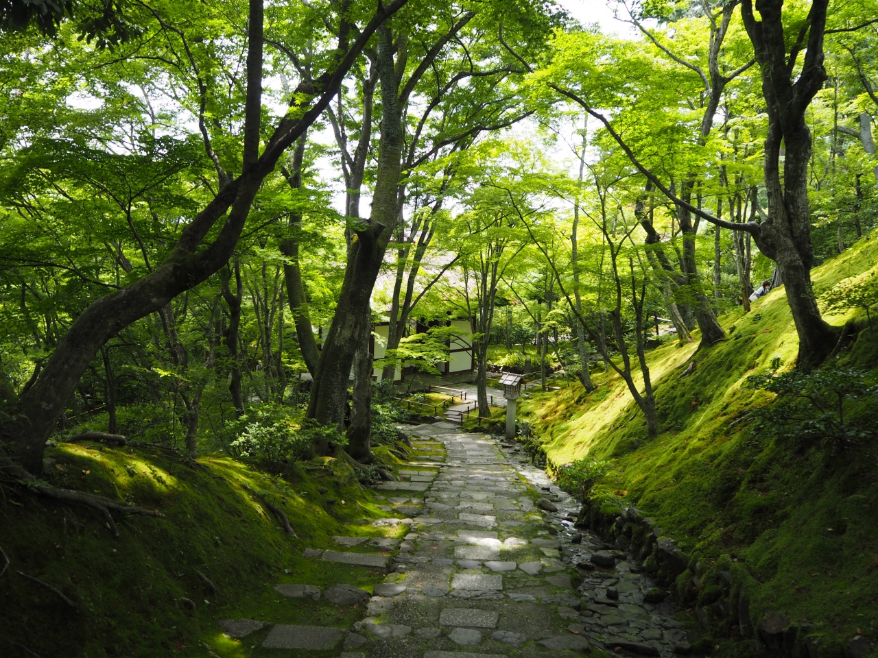 青葉もみじと苔の緑が綺麗でした