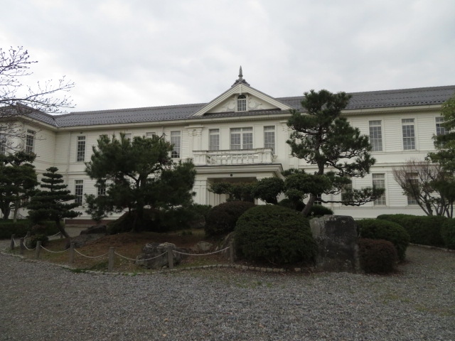 近江商人の街並みから近江八幡駅に向かう途中にあります。近江八幡に並ぶヴォーリス建築の雰囲気を感じさせる白亜の建築物です。しかし、ヴォーリス建築ではないとのことでした。春休みで子供はいないので、素晴らしい白亜の洋館の外観をゆっくり楽しめました。