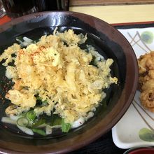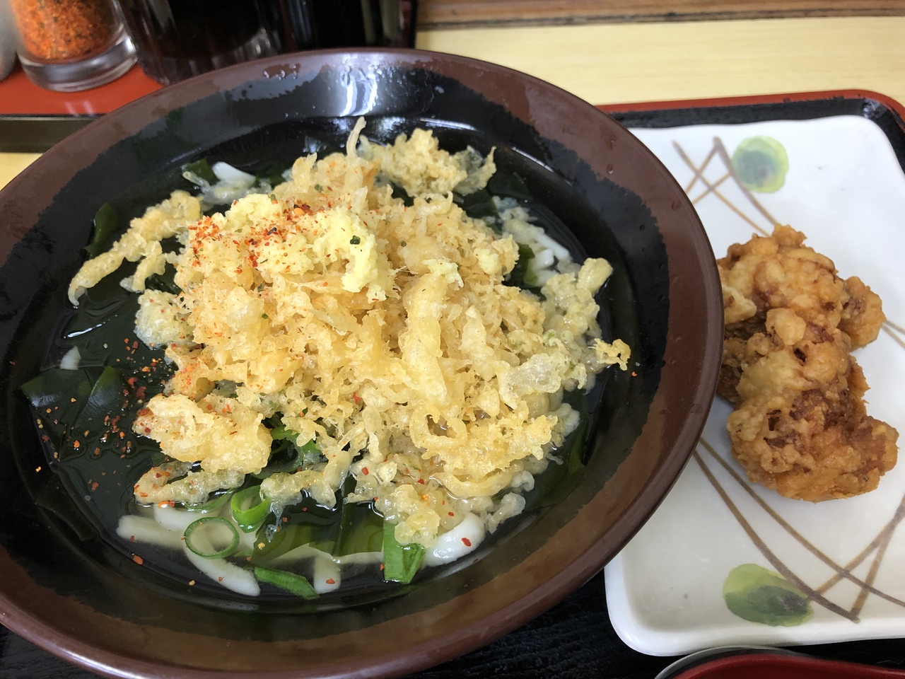高松を旅行で訪れ、夜一食目?のうどんを食べに入店しました。セルフサービスで再度ディッシュを頼みつつ、うどんの種類を注文しました。麺はコシのあるうどんで、まさに讃岐うどんと思った次第です。10分ほどで食べて退店する地元の方が多く、粋を感じました。サクッと食べるのによいと思いました。