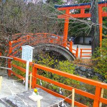 下鴨神社の境内にある建物のひとつです。楼門から境内に入って右のほうに進んでいくと小さな小川が流れており、その川に赤い橋と鳥居があり、その先の池のほとりに御手洗社がありました。この神社は井戸の上にたっているのだそうです。