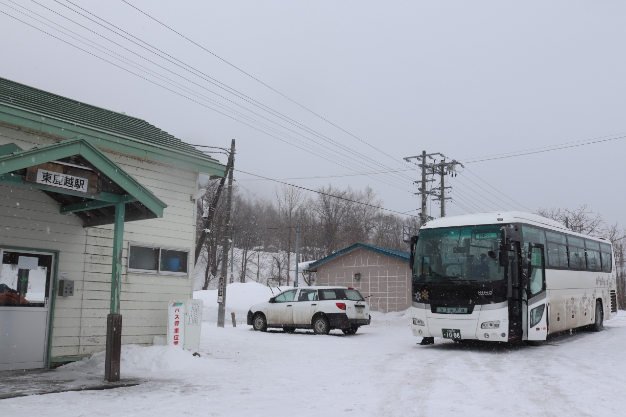 根室本線の途中駅ですが、現在はこの先が台風災害で不通になっており、この駅で新得方面への代行バスにのりかえとなります。富良野方面から乗ってきた列車は折り返し、木造の駅舎の前には代行バスが待っていました。