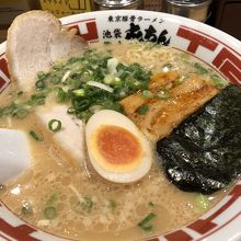 池袋に本店を構える豚骨系のラーメンの支店です。川崎駅近隣のビルに入店しています。縮れた麺を使っており、豚骨スープとの絡みが特徴的でした。とんこつの他に野菜もスープに使われているのか、臭みは感じられず、食べやすいラーメンでした。昼時は混雑するようです。臭みがないため女性にもよいと思いました。