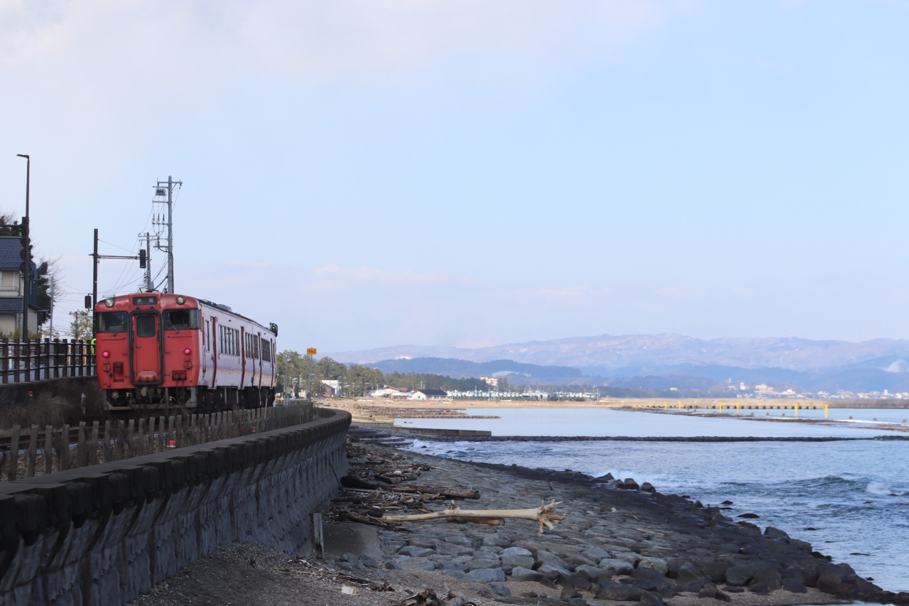 高岡と氷見を結ぶJR西日本のローカル線。最近では観光列車「べるもんた」も運転されています。車窓でのおすすめは雨晴海岸付近です。富山湾越しに晴れていれば立山連峰を眺めることができます。列車本数も多いので、雨晴駅での途中下車がお勧めです。