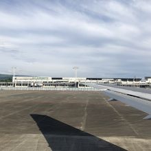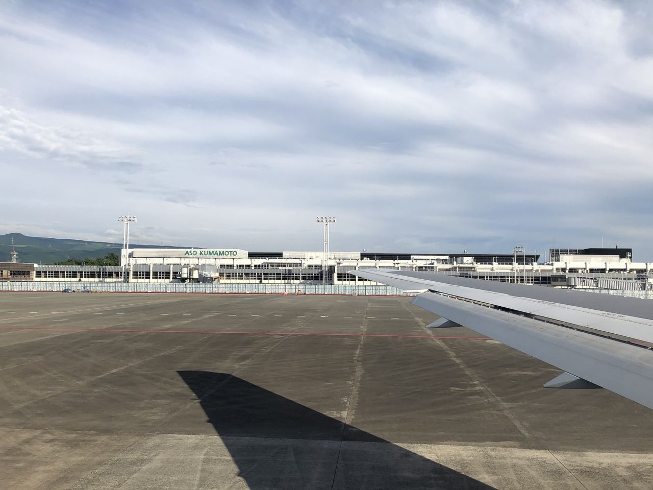 熊本や阿蘇の玄関口である空港で、羽田や大阪、名古屋、沖縄その他の空港とつながれています。数年前の熊本地震の被害を受けて、また国際線ターミナルとの接続を目指して現在改築中で、新しい施設で運営されています。お土産店は以前と同じ規模で営業されているので買い物に困ることはありませんでした。2023年春までの仮の新施設とは言え快適でした。