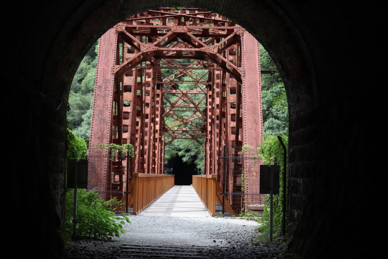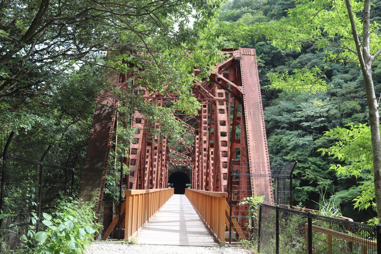 武庫川沿い福知山線旧線廃線跡が遊歩道として整備されております。生瀬から武田尾駅にかけての5キロ弱で、渓谷を眺めながら、枕木の残る廃線跡を進みます。途中トンネルも多く、照明がないので、懐中電灯が必要です。