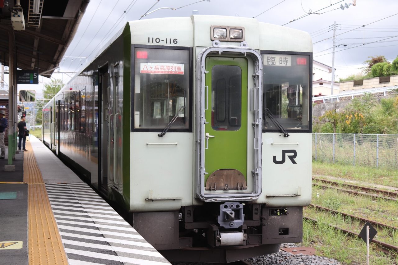 小海線の混雑区間である小淵沢~野辺山を結ぶ土休日運転の臨時列車です。普通列車と同じキハ110系車両を使っておりました。運転席には列車名の札が入っているぐらいで、特に定期の普通列車と差別化はしておりません。