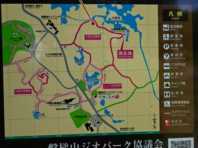 1,2kmの探勝路です。中瀬沼展望台までは少し登りになっていますが、それ以外はほぼ平坦で歩きやすいです。でもベビーカーや車椅子はほぼ無理でしょう。