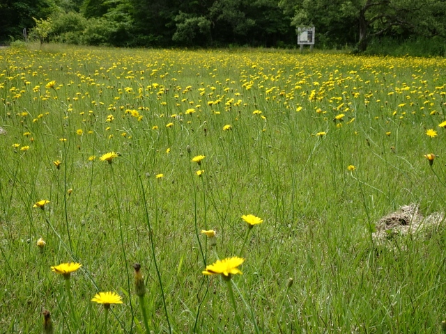 また道路側の広場にはタンポポに似た黄色い花が広場一面に咲いていて、きれいです。