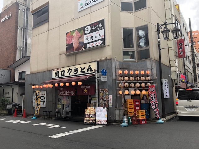 JR藤沢駅の南口から歩いて1分、駅前の串焼専門店です。今は500円ランチを推していて、お店の前には500円ランチ、ワンコインランチという看板が出て、お客さんを誘っています。串焼5本がついて串焼定食は、特にお得感があります。通常の串焼メニューも、100円からとリーズナブルです。