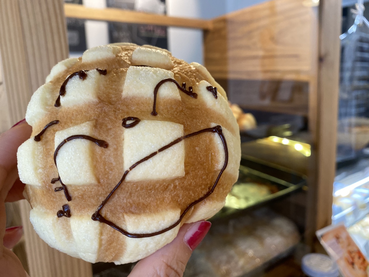 メロンパンは大小サイズあり、可愛らしく絵が描かれている。