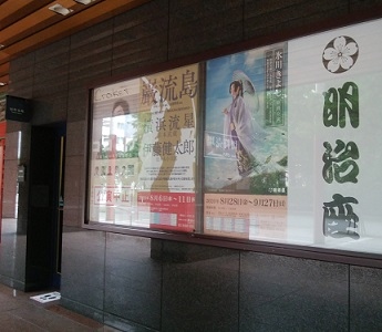 地下鉄浜町駅からすぐの明治座、外観は現代的なビルです。公演中止が相次ぎ、いつもならヒラヒラとしているのぼりや垂れ幕もなく明治座の周辺も寂しげな印象です。劇場入口にある切符売り場も休業中でした。