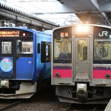 全線通して運転される列車はなくいくつかの区間に分断されています。その中でも秋田~追分は男鹿線の車両も乗り入れており車種も豊富。それでも乗客は多くなく日中時間帯に座れないということはまずない程の乗車率。利用したのが無人駅でしたが、「乗車駅証明書」を取って降車時に精算というパターンも。