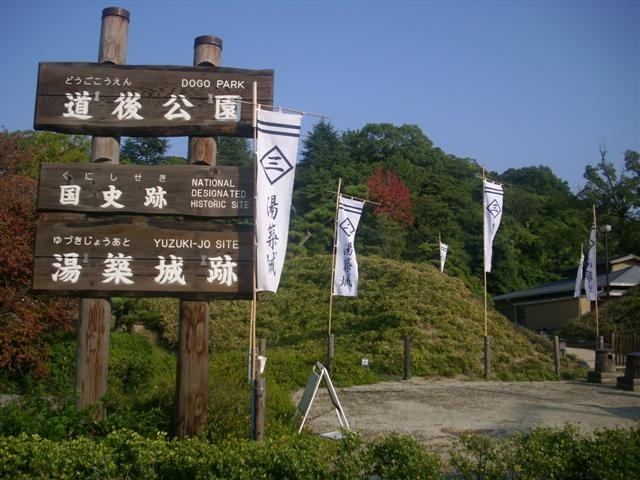 南北朝時代初期に河野通盛が築いた城の跡地に整備された、湯の街道後にある入園自由の公園です。