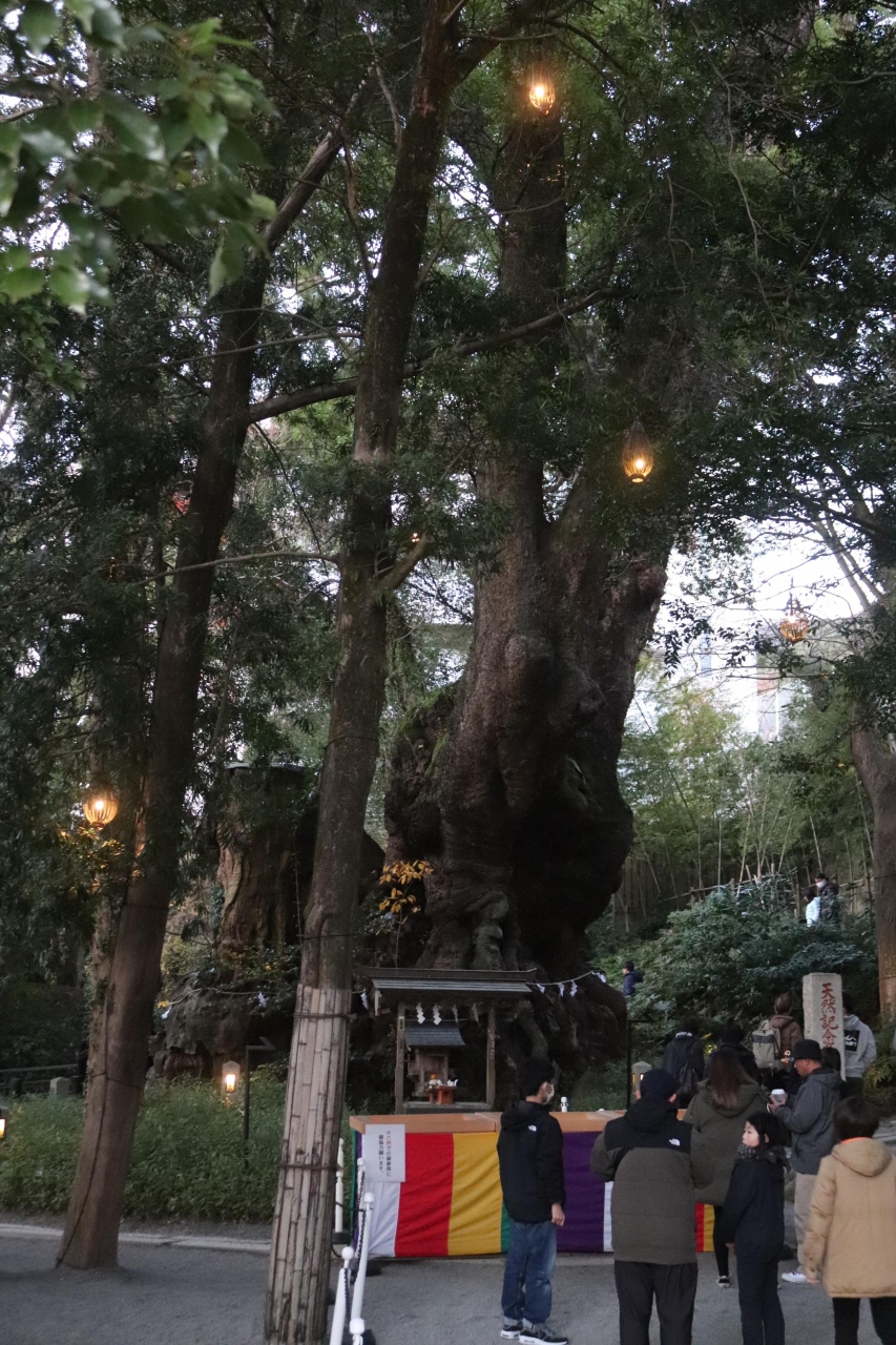 来宮駅から歩いて10分弱、途中東海道線のめがね橋(来宮暗渠)をくぐると到着します。熱海のパワースポットで境内の樹齢2千年のご神木「大楠」をめぐりました。神社スイーツも充実しており、境内カフェもありました。