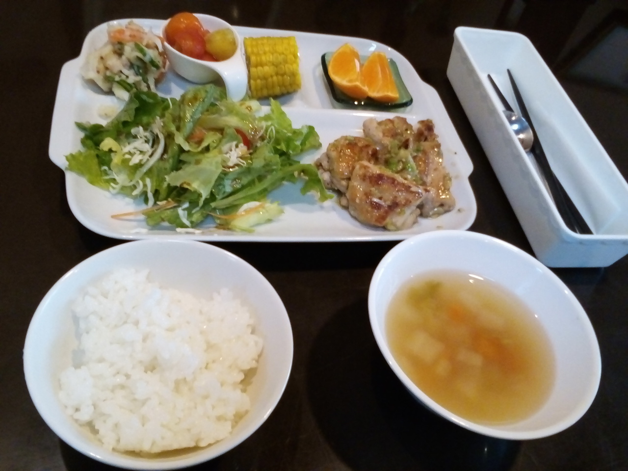 住宅に挟まれて、ちょっと見落としてしまいそうなくらい小さな可愛いカフェです。駐車場は前に3台分。裏にも数台分。店内はテーブル席が5個。お勧めは「今日のランチ」で、身体に良さそうなおかずがちょっとずつ数種類並んでいます。