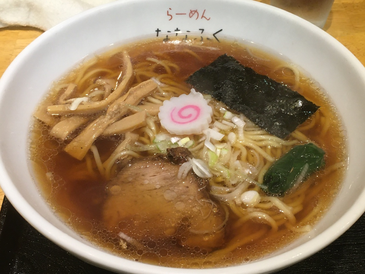 武蔵小金井駅から徒歩3分、狭い路地にあるラーメン屋です。カウンターのみの狭い店内で、土曜日昼は列ができていました。チャーシューはロースかバラを選べます。ラーメンはシンプルな醤油味で、さっぱりいただきました。