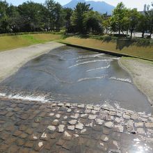 よく整備された公園で、鹿児島市内を周遊するバスでも行くことができますが、無料の駐車場もあります。公園内には平成5年の鹿児島水害で崩壊を免れた西田橋があり、敷地内には資料館もありました。西田橋の下に流れる人工川では軽く水遊びができるようになっています。