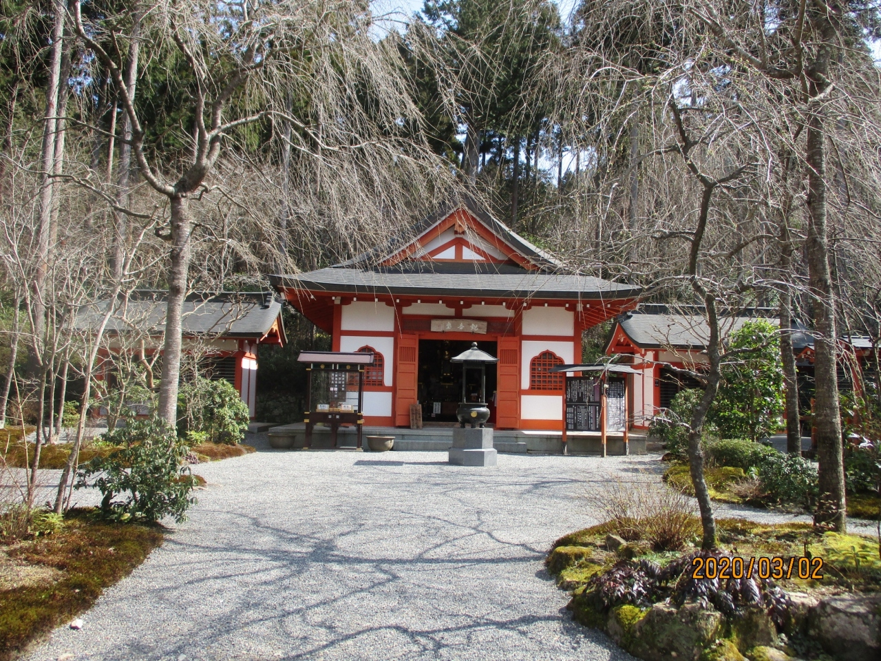 三千院の宸殿をでて、往生極楽院などを過ぎ、金色不動堂の奥まで行ったところにたっています。平成10年に建てられたという新しい堂で、中には金色の観音像が安置されています。