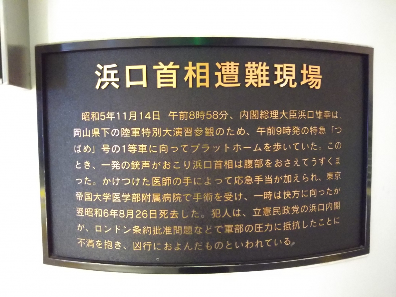 解説によれば実際に銃撃されたのは、つばめ号に乗り込むべくプラットホームを歩いていた時とのこと。原首相遭難の教訓が活かされなかったのかという気がするものの、濱口首相の意向により一般の立ち入りを許したことが徒となったようです。